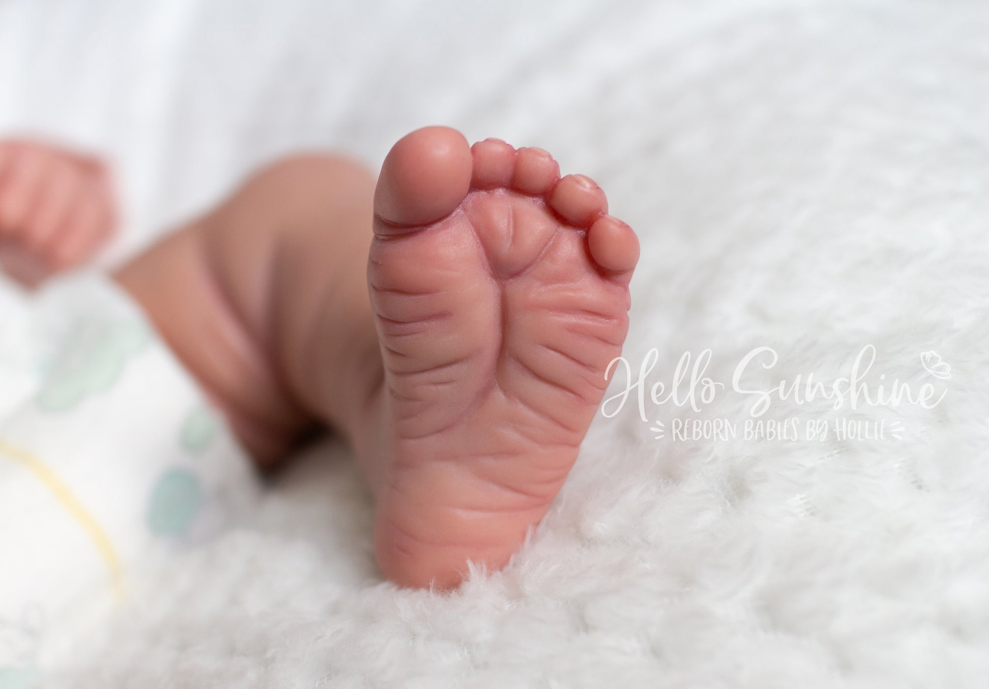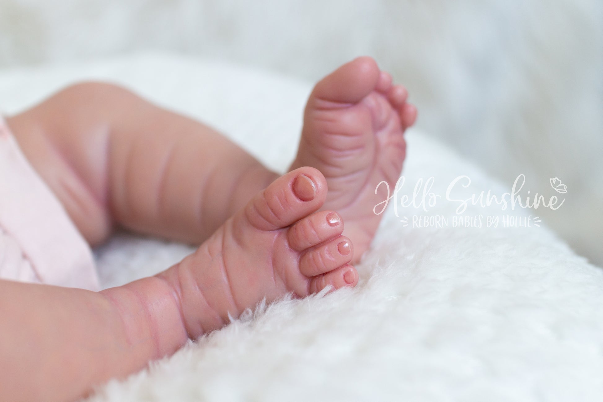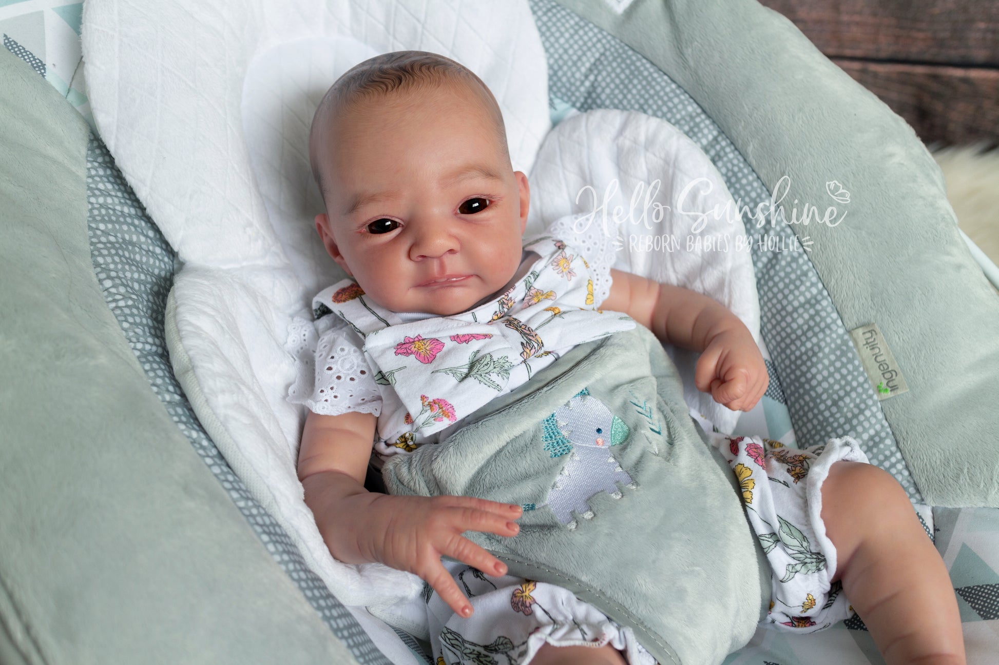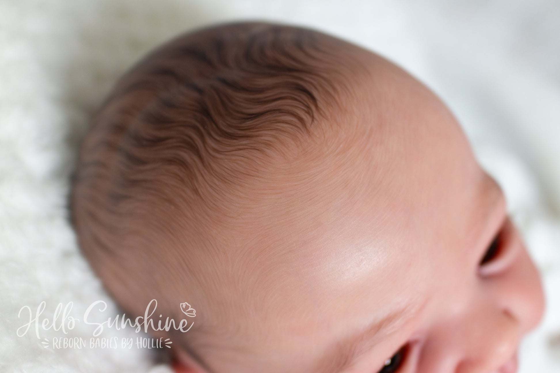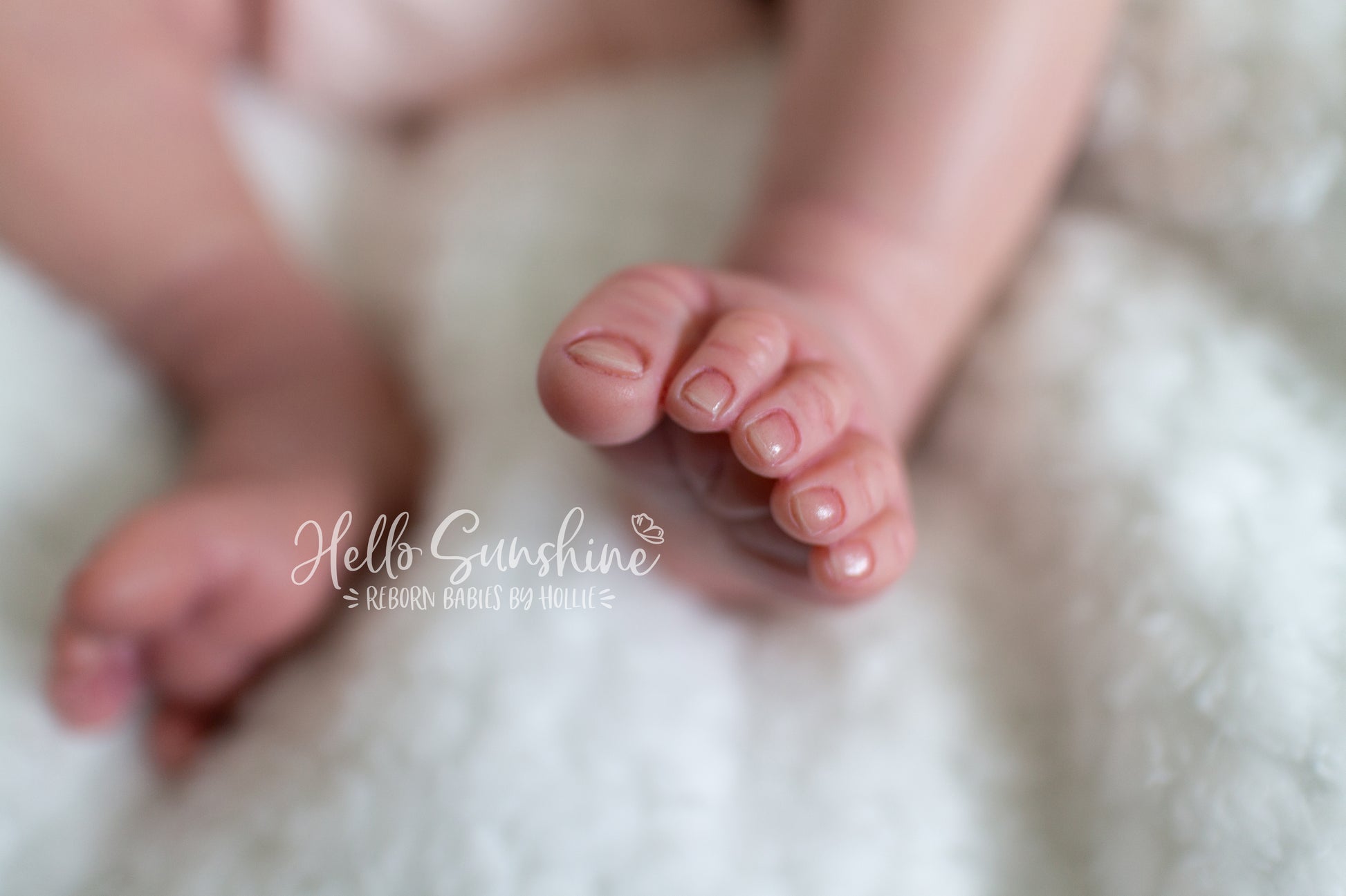 This sweet portrait reborn of the real-life Meki, went home with weighted swivel vinyl limbs, faux suede weighted body, magnet dummy, onesies, bloomers, two-piece romper set, smocked dress with bloomers and knitted wrap.